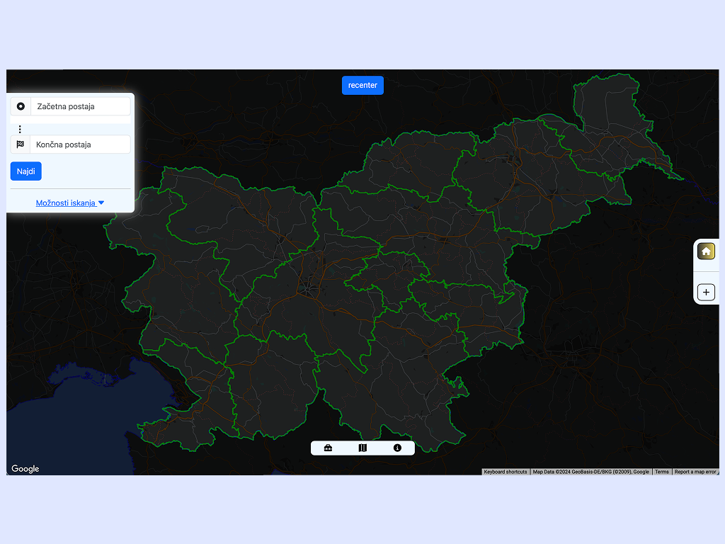 "Google Maps za slovenski javni prevoz." Zaradi zastarelega načrtovalca poti podjetja Arriva in Slovenskih železnic sem se odločil, da naredim svojega. Aplikacija omogoča načrtovanje poti z vlakom in avtobusom po celotni Sloveniji. Aplikacijo sem predstavil Ministrstvu za digitalno preobrazbo in dvem podjetniškim inkubatorjema.